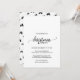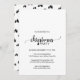 This simple black and white calligraphy christmas party invitation card is perfect for a rustic holiday event. The neutral design features an elegant brush script font and a small christmas tree. The backing features an evergreen forest pattern.