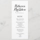 Beautiful Typography Wedding menus you can customize. Simple Black White Elegant Script Wedding Menu. Design by Elke Clarke © Available at www.zazzle.com/monogramgallery. Add all your personal information to create a simple yet sophisticated menu you can add to your table settings at the wedding reception dinner.