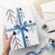 Simple Black White Merry Christmas Trees Gift Wrap