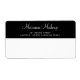 Étiquettes d'expédition moderne avec un design simple avec votre nom d'entreprise dans un élégant script blanc et deux lignes de texte pour votre adresse de retour dans une police sans serif, sur un arrière - plan noir. Vous trouverez ci-dessous un espace blanc où vous pouvez écrire à la main l'adresse de votre client. Ces étiquettes d'expédition minimalistes et chics sont un excellent moyen d'ajouter une touche professionnelle à vos colis.