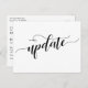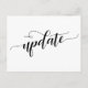Using a pretty script font with swirls and waves, I created a graphic depicting "update". The background was left plain and simple; please feel free to change this to any colour you wish. The reverse side includes template placeholders for your details with matching accents featuring the calligraphy font. Use these template fields to add your personal details and change my draught wording to suit your needs and situation. Other pieces are available in the set and I'm happy to create additional variations upon request. // 99 //