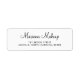 Modern return address labels featuring a simple design with your business name in an elegant black script font and two lines of text for your return address in a sans serif font, over a white background. These minimalist and chic return address labels are a great way to add a professional touch to your envelopes.