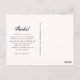 Simple black and white wedding photo thank you postcard features one photo and pretty thank you white calligraphy script with a black background. The back includes a personal message with return address.