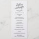 This simple wedding program features a minimalist black and white look with hand drawn script. It also a perfect option as a reception menu card for a casual wedding. We suggest printing on metallic card stock for a formal yet modern wedding or for a more luxurious appearance.