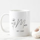 Celebrate the joy of motherhood with this beautifully designed "Mom" coffee mug. Featuring a delicate wildflower motif and "Est. 2025" to mark the beginning of the new mom's journey, this mug is a thoughtful and meaningful gift. Whether she’s toasting to special moments or enjoying a well-deserved break, this keepsake will remind her of this unforgettable year. All wording can be changed (Change Mom to Mama, Mother, Nana, Grandma, Aunt etc)