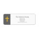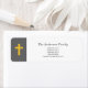 A simple and elegant return address label sticker, including a black background on the left with a gold cross. A very sober way to communicate for a pastor, a church, a Christian community, or just a family.