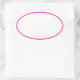 This white sticker has a hot pink border. The sticker and the border are in the shape of an oval.