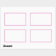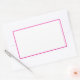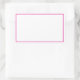 This white sticker has a hot pink border. The sticker is in the shape of a rectangle.