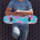 Simple Blue and Pink Flower Pattern Skateboard