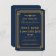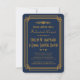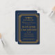 These rehearsal dinner invitations feature a blue and gold colour palette, a geometric frame, and other stylistic details all inspired by Art Deco and the roaring twenties. You can customize the sample text fields to your liking.