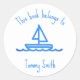 Simple Blue Boat Drawing Round Sticker