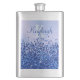 Sip in style with this classic flask, featuring a refined blue brushed metal design adorned with glitter accents. Personalize it with your monogram name and initial for a distinctive touch. Perfect for carrying your favourite beverages, this flask combines timeless elegance with practical functionality, making it a standout accessory for any occasion.
