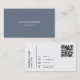 Simple custom corporate black QR Code business card in a modern minimalist style. The template can easily be updated with your QR code and contact information. The front side is blue-grey, back side is white