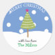 Simple Blue Merry Christmas Tree Classic Round Sticker