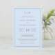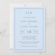 Simple boy couples baby shower invitation featuring a modern yet elegant design with your two letter monogram at the top and your details surrounded by a thin border. All text is in grey, over a pastel blue background. The fonts and background colours may be changed to any colours you wish. A chic and stylish design that is great for minimalist parents-to-be.