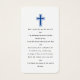 An elegant and thoughtful tribute for a loved one. Their photo is placed on the front of the prayer card in a double blue frame. In Loving Memory is placed above. Their name and life dates are placed below. Two lines of text let you personalize your tribute. The back features a blue cross. You can place your loved one's favorite prayer or poem below