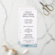 Grand, double face, modèle du programme de cérémonie du mariage côtier. Cartes grises simples, très pâles, avec une image d'eau bleue sur le fond des deux côtés. Style de police décontracté imprimé pour toutes les informations de cérémonie et script moderne pour le titre et le message. Le programme est parfait pour une petite fête de mariage près de l'eau ou sur un navire.