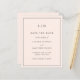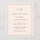 Simple blush pink budget save the date featuring a modern yet elegant design with your two letter monogram at the top and your wedding details surrounded by a thin border. A chic and stylish design that is great for a minimalist couple.