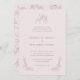 Simple Blush Pink Wedding Invitation. Romantic and timeless, this dusty blue wedding invitation features vintage line art floral peonies that can be used for any wedding season. Add a touch of modern and classic elegance to your special day with these stylish and beautiful wedding invitations. Dusty rose text on a light pink background with a lovely coordinating pattern on the back.