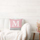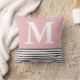 Simple Blush Pink With B/W Stripes Monogrammed Throw Pillow