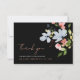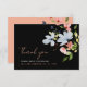 Simple Boho Black and Pink Floral Wedding Thank You Card