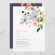 Simple Boho Blue and Pink Floral Wedding Invitation