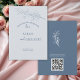 These thank-you postcards headline your message of gratitude along with minimalist flower. The delicate foliage paired with the typography make the design sophisticated and memorable. The back features a traditional postal-style template and a helpful QR code to link to pictures from the day.