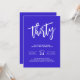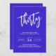 It's time to party to celebrate a 30th birthday bash with this modern and bold birthday party invitation. Let your friends and family know to save the date for this milestone event so they can join in the fun. This stylish invitation has an electric blue background with white handwritten script accents blended with a bold modern font pairing. Personalize the text template with your details and party with pizzazz!