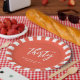 It's time to party to celebrate a 30th birthday bash with this modern and bold birthday party plate. This simple stylish design has a vibrant orange background with white handwritten script accents blended with a modern sans serif font. The plate is bordered in a coordinating orange and white stripes pattern. Personalize the text template with your guest of honour's name and date. These plates are available in 9-inch diameter and 7-inch diameter. Shown here in the 9-inch style.