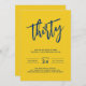 It's time to party to celebrate a 30th birthday bash with this modern and bold birthday party invitation. Let your friends and family know to save the date for this milestone event so they can join in the fun. This stylish invitation has a vibrant mustard yellow background with navy blue handwritten script accents blended with a bold modern font pairing. Personalize the text template with your details and party with pizzazz!