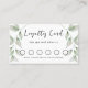 Simple botanical green and white watercolor leaves company loyalty card with QR Code.
