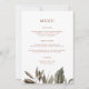 Modern greenery terracotta and white boho wedding menu with couples monogram on the back of the menu.