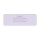 Elevate your holiday mailings with these cute and simple return address labels, featuring a delicate, minimalist purple bow graphic on a lavender background. These labels are fully customizable: easily personalize the template with your own name and address, and change the colour of the background, text, and bow to perfectly match your correspondence. © Kimbellished, LLC