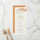 This fall wedding reception menu features a gently arching orange, leafy branch that frames your dinner menu text of elegant and easy to customize typography. Personalize this menu even more by changing the background colour from soft ivory to the colour of your choice and add your favourite engagement photo to the backer for a truly one of a kind invite.