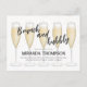 This design features watercolor brunch and bubbly bride, a bridal shower wine champagne drinks, a simple minimalist minimal design, trendy stylish calligraphy script font, champagne flute glass toast bar, whimsical typography text style, brunch with the bride invitations, for her bride to be, rustic orange gold simplistic artwork, a bridal shower party celebration