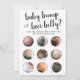 Fun beer bellies vs. baby bumps photo baby shower or gender reveal party guessing game (with answers below) featuring a modern handlettered quote typography overlay.