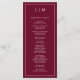 Modern Wedding Program featuring a simple yet elegant design with a traditional layout. Your two letter monogram is at the top along with your details surrounded by a thin border. All design elements are white over a burgundy background and may be changed in the design editing tool. A minimalist design with a classic feel that is great for a formal wedding.