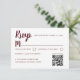 This elegant wedding RSVP card features a modern handwritten script paired with clean typography for a timeless look. Designed to coordinate seamlessly with a full wedding stationery suite, it includes space for guest names, attendance selection, and number of guests, plus an optional QR code for easy online replies. Perfect for modern, romantic, and classic weddings, this RSVP offers a stylish and practical way to collect responses
