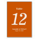 With simple minimalist styling and a slight retro vibe, this wedding table number in trendy burnt orange with ecru beige lettering repeats on both sides of the card. Personalize with the bride and groom's name and wedding date. Create a separate table number card for each table number you need and add to cart as you create each one. Once you have all your table numbers, complete the checkout process.