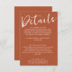 Simple Burnt Orange Terracotta Wedding Details Enclosure Card