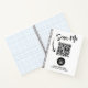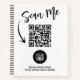 This design features a business custom notebook, with an add your logo, QR code, social media, with a scan me, connect with us, a simple minimalist, modern, corporate, minimal style.