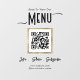 Simple text with business guest option. Qr code for food or service menu with website or social media connection. Like share subscribe