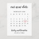 Modern Wedding Postponement Announcement Postcard featuring a calendar in black and white with the words, "our new date" and your names in a handwriting font and a red heart surrounding your date. The backside has your personal message and return address for easy mailing. This simple design is great for a minimalist couple to announce that their wedding has been postponed. DESIGN TIP: For a column that does not have a date in the first row (week), add a space before the first number. If you need any assistance with customizing the calendar, please feel free to reach out to me via the "contact" button.