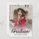 Simple calligraphy design and a custom photo. This graduation card design has announcement at the front and graduation party invitation at the back. You can change the photo and other details.