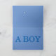 Une simple carte de voeux de faire-part de naissance de bébé dans la couleur du haut et du bas est bleue avec les mots Un GARÇON dans le bleu contrasté