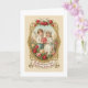 This greeting card shows a vintage-style scene inside a golden oval frame. In the center, two sweet, cherub-like children stand in a rose garden, looking calm and caring. The boy has small feathered wings, light blue trousers, and a white shirt, and he gazes outward with an innocent, gentle face. Next to him, the girl wears a white tiered dress with lace and a bonnet, and together they hold a red heart-shaped box tied with a red ribbon. Around the oval, a ring of roses in deep red, soft pink, and creamy white fills the border, adding a cozy, romantic feel. At the top of the frame, two white doves sit close together, suggesting love and peace. Along the bottom, a curved banner reads “To My Dearest Love, A Gift From A True Heart” in flowing black cursive-style lettering, placed neatly under the picture. It feels meaningful to give because it’s tender and old-fashioned in the best way, making it easy to say “I care about you” 🥰❤️