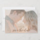 A soft blush overlay makes this simple, modern and effortlessly chic wedding photo save the date a nice choice for a fall wedding or for any couple with blush, soft pink, monochromatic beige or dusty pink colour schemes.
