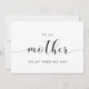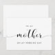 Une carte-cadeau simple et minimaliste pour écrire un message personnel et sincère à votre mère le jour de votre mariage. Entièrement personnalisable avec vos couleurs préférées (texte et arrière-plan). Vous pouvez ajouter un message au verso, ou le laisser vide si vous préférez écrire votre message à la main plus tard.