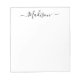 Elegant black and white notepad with your custom name in trendy script calligraphy with flourishes. Minimalist modern, this simple signature style design is classy yet stylish.