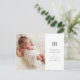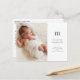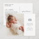 This chic grey and white birth announcement postcard features a simple, modern design. The front of the postcard includes a large square photo on the left and clean, minimalist text on the right. Customize with your baby's initial, first and middle name, birth date, birth details, and your names. On the back, you can write a personal message to recipients.
